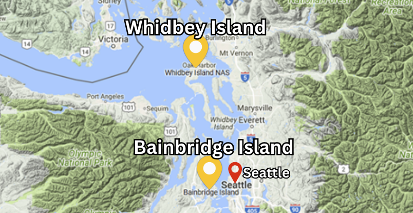 Whidbey Island is just north of Bainbridge Island