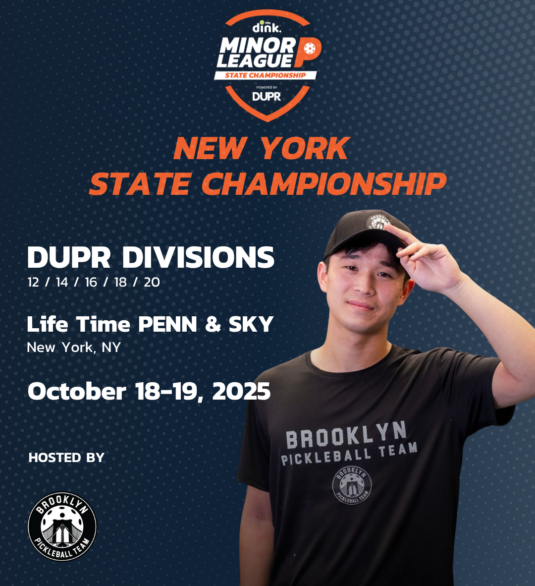 New York State Championship (Oct 18–19) in New York at Life Time Penn & Sky. The Brooklyn Pickleball Team will play host.
